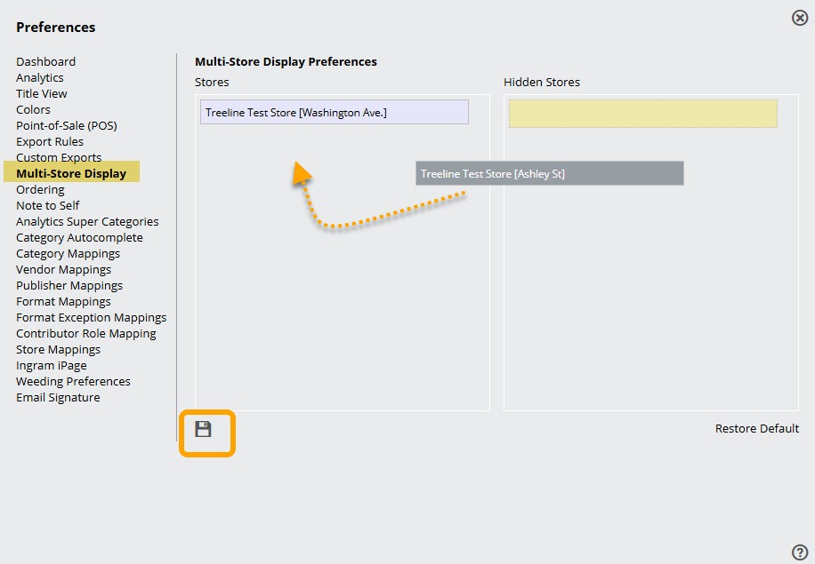 There, select Multi-Store Display. Then simply drag and drop the store locations from the Hidden Stores column to the Stores column, and arrange in the order that you prefer. Then click the Save icon.