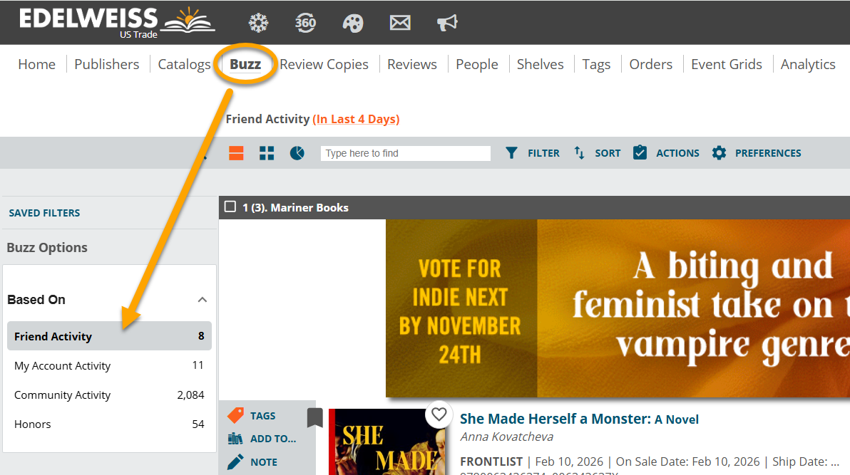 And, their activity will be visible in the Friends section of your Buzz page: