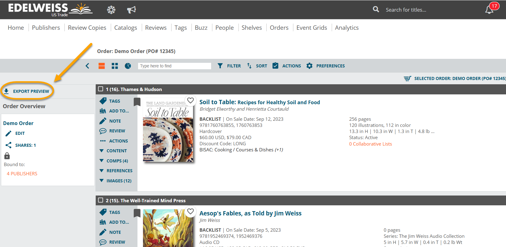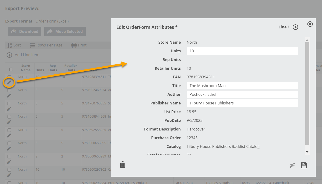 …Or click on the name of your order to see it in a catalog-style view. From there, enter the Export Preview screen here: