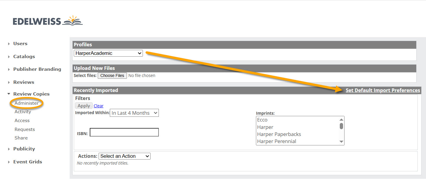 Select Default Import Preferences (if you have multiple publisher profiles, you’ll need to select a profile first).